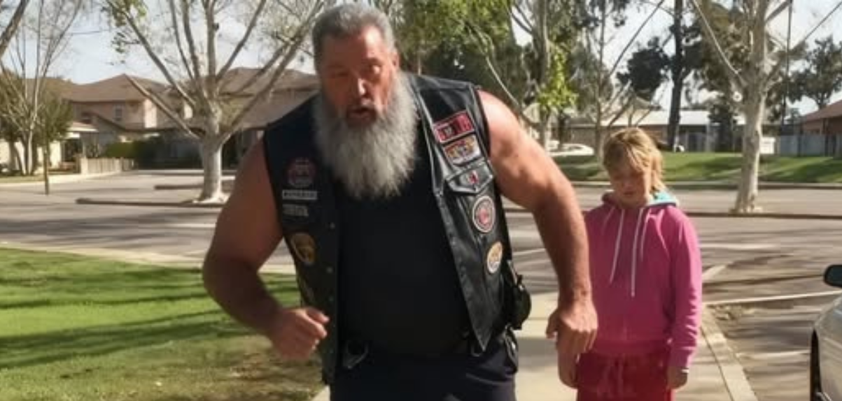 Een klein meisje met schattige vlechtjes en een grote man met stoere leren laarzen vormden samen een opvallend en ontroerend duo op het drukke speelplein. Terwijl andere ouders met nieuwsgierige ogen toekeken, straalde Lily van puur geluk en volledig vertrouwen in haar grote vriend, een gevoel dat haar hele wezen leek te vullen.