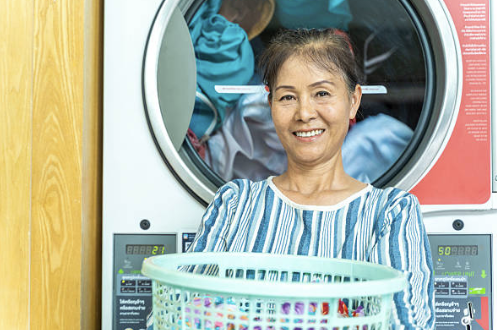 In de vroege ochtend liep Sarah met een zware tas vol kleding door de stille straat. Binnen vulde de geur van vers wasmiddel en warme lucht de ruimte. Ze liet muntjes in de machine vallen en nam plaats op een harde plastic stoel. Uitgeput van haar nachtdienst dommelde ze kort in slaap, haar hoofd rustend tegen de muur.