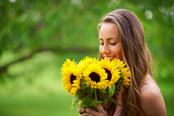 Shot of a young woman holding a bunch of sunflowers outsidehttp://195.154.178.81/DATA/i_collage/pi/shoots/805934.jpg