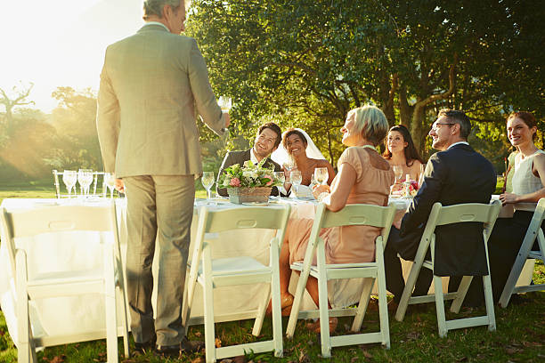 Tijdens een feestelijke bruiloft in augustus stond de biologische vader van de bruid plotseling op. Met een glas in de hand sprak hij over hoe hij zijn dochter “de mooiste dag van haar leven” had bezorgd.