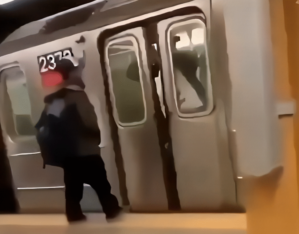 De metrodeuren stonden op het punt om te sluiten. Bij moderne metro’s gaat dat automatisch en klinkt er eerst een waarschuwingssignaal. Dat moment kan voor extra haast en spanning zorgen.