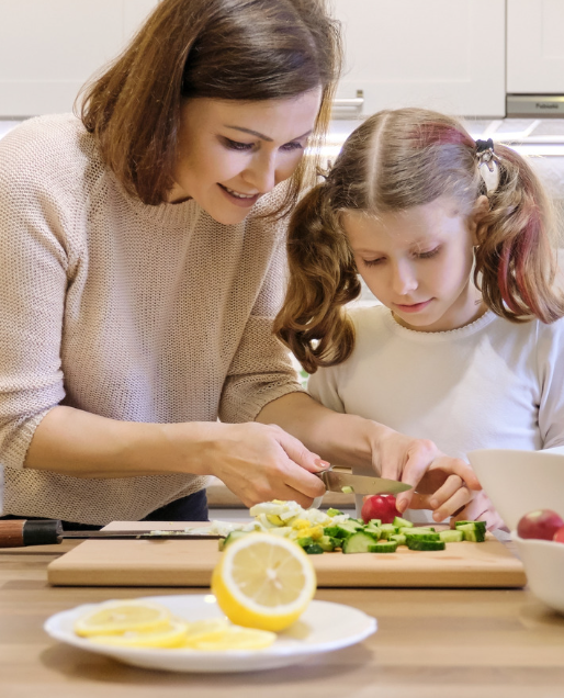 De stiefmoeder beschrijft dat zij in een huishouden leeft waar gezond leven centraal staat.