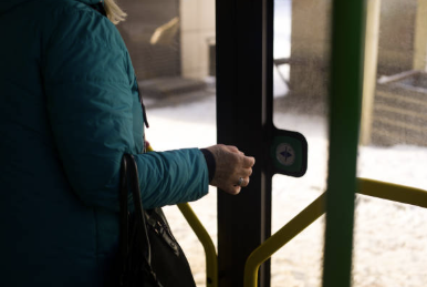 Bij de volgende halte stapte een oudere dame in die duidelijk moeite had met het instappen vanwege de zware tas die ze stevig tegen haar lichaam drukte. Het leek alsof ze bang was dat iemand hem zou laten vallen of dat ze de grip zou verliezen, haar handen trilden terwijl ze zich naar een stoel worstelde in de overvolle bus.