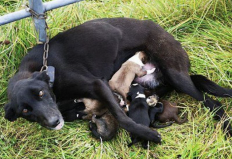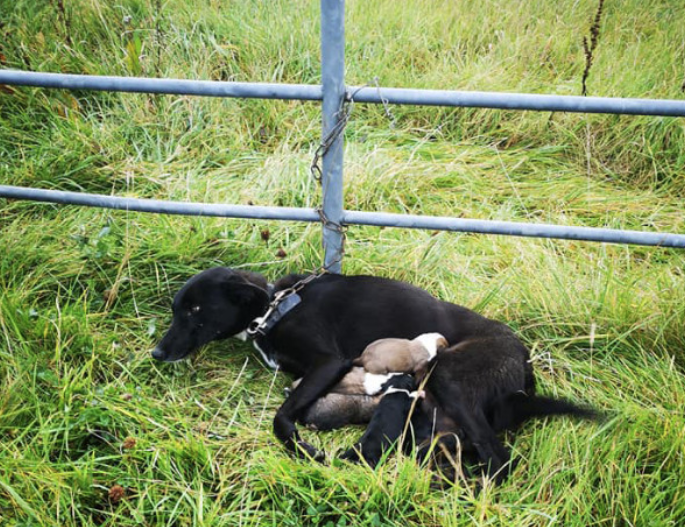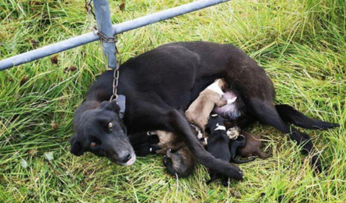 Op een uitgestrekt, verlaten veld bij Vorden, ver weg van de dichtstbijzijnde huizen en omringd door eenzaamheid, troffen voorbijgangers een aangrijpend tafereel aan dat hun harten diep raakte en hen tot tranen toe bewoog. Daar lag een moederhond rustig bij haar zes piepjonge, pasgeboren puppy’s, met een korte ketting vastgemaakt aan een verroeste paal, terwijl ze haar kleintjes onvermoeibaar, liefdevol en uiterst waakzaam beschermde tegen elke mogelijke dreiging die zich kon aandienen, gedreven door puur instinct en een onverwoestbare toewijding die diep van binnen kwam.”