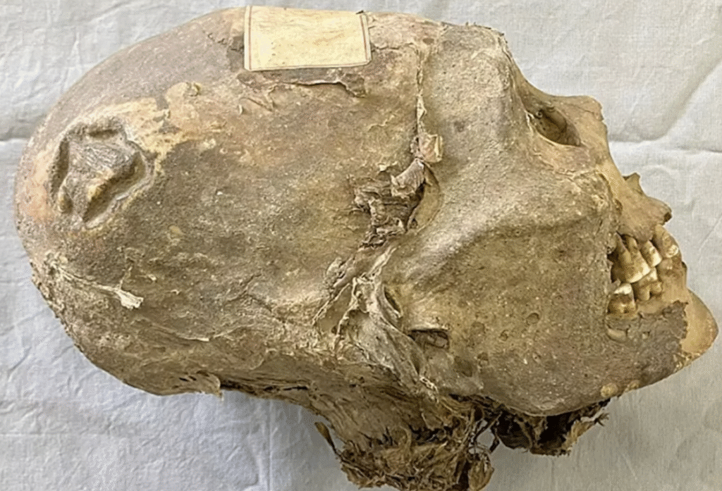 - Louis Kuffré bracht in 1876 dit bijzondere hoofd naar Zwitserland, waarmee hij de basis legde voor jarenlang historisch en wetenschappelijk onderzoek.