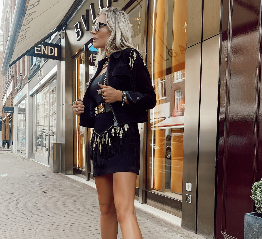 Nikkie combineerde haar outfit met de perfect bijpassende hoge hakken en een stijlvolle zonnebril, waarmee ze de look een nog luxueuzere en verfijnde uitstraling gaf die haar kenmerkende stijl benadrukte. Ze staat erom bekend om altijd trends te creëren en zich graag te onderscheiden met haar opvallende en gedurfde kledingkeuzes, waardoor ze keer op keer bewijst een trendsetter te zijn die niet bang is om haar eigen unieke stijl te laten zien aan de wereld.
