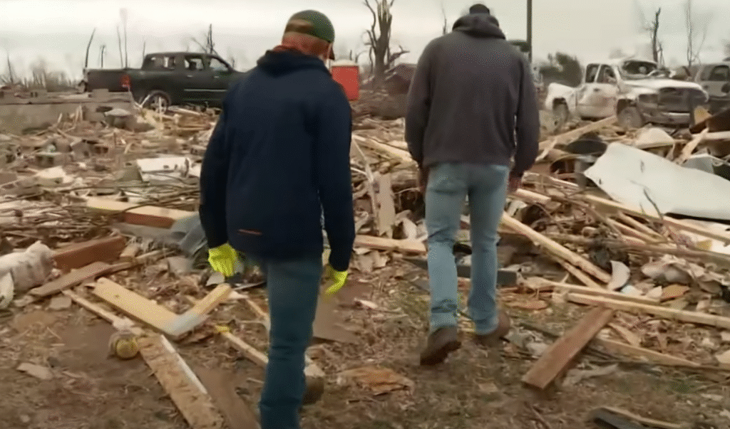 Toen een tornado West-Kentucky trof, veranderde het landschap ingrijpend. Jordan Evans bevond zich ineens in een wereld vol vernielde gebouwen, kapotgetrokken daken en omgevallen bomen, waardoor vertrouwde straten onherkenbaar waren geworden en dagelijkse routines abrupt stilvielen.