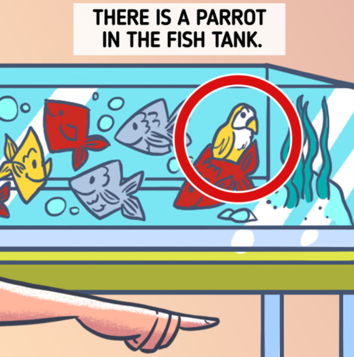 - Oplossing van de puzzel: Het aquarium staat op een plek waar het niet logisch of praktisch is, wat een typisch voorbeeld is van een visuele fout die gemakkelijk over het hoofd wordt gezien.