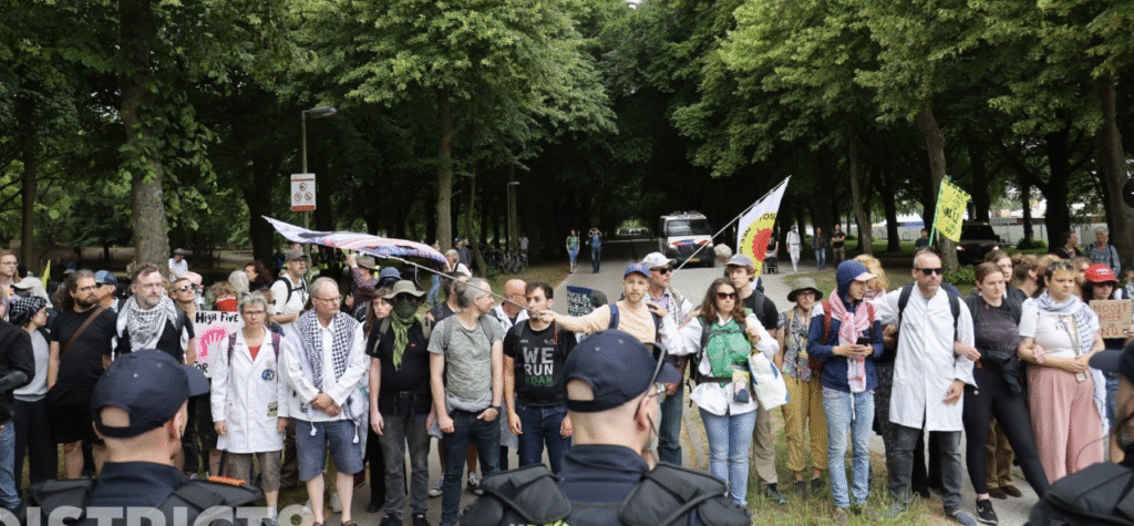 De demonstratie begon rustig en georganiseerd. Veel deelnemers werkten samen om de bijeenkomst overzichtelijk te houden en de boodschap centraal te stellen.