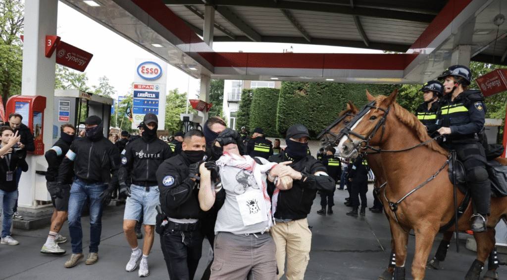 Toen demonstranten bleven zitten, begon de politie met het verwijderen van actievoerders. Dat zorgde voor een intens maar gecontroleerd moment op de snelweg.