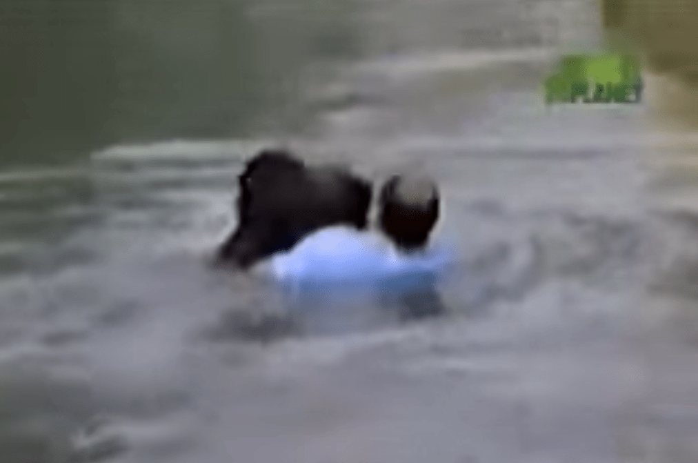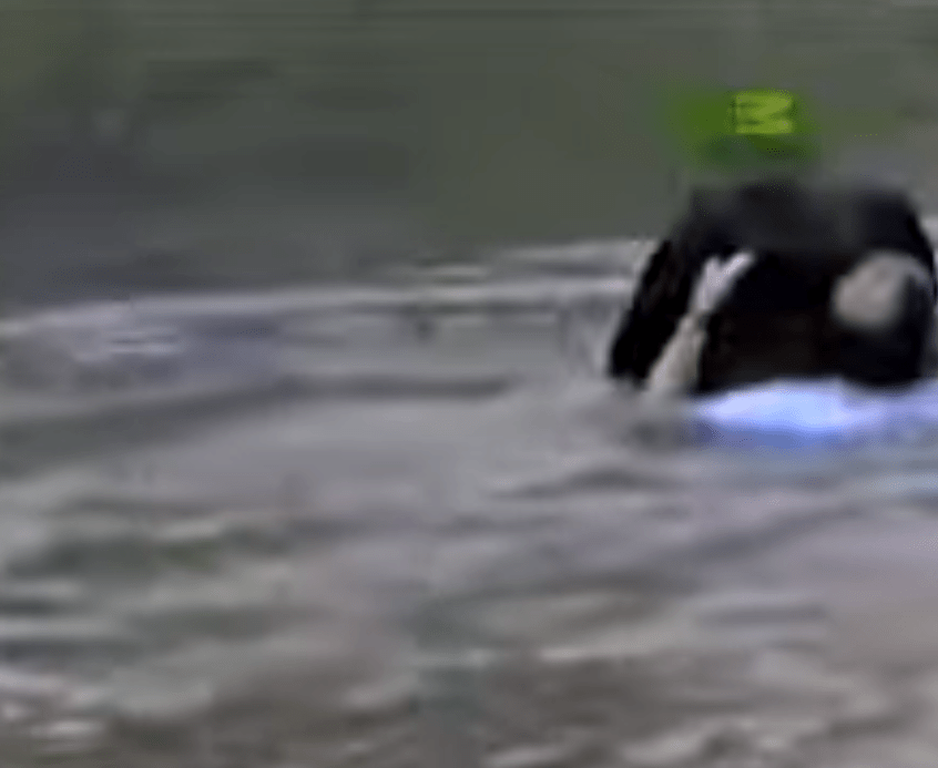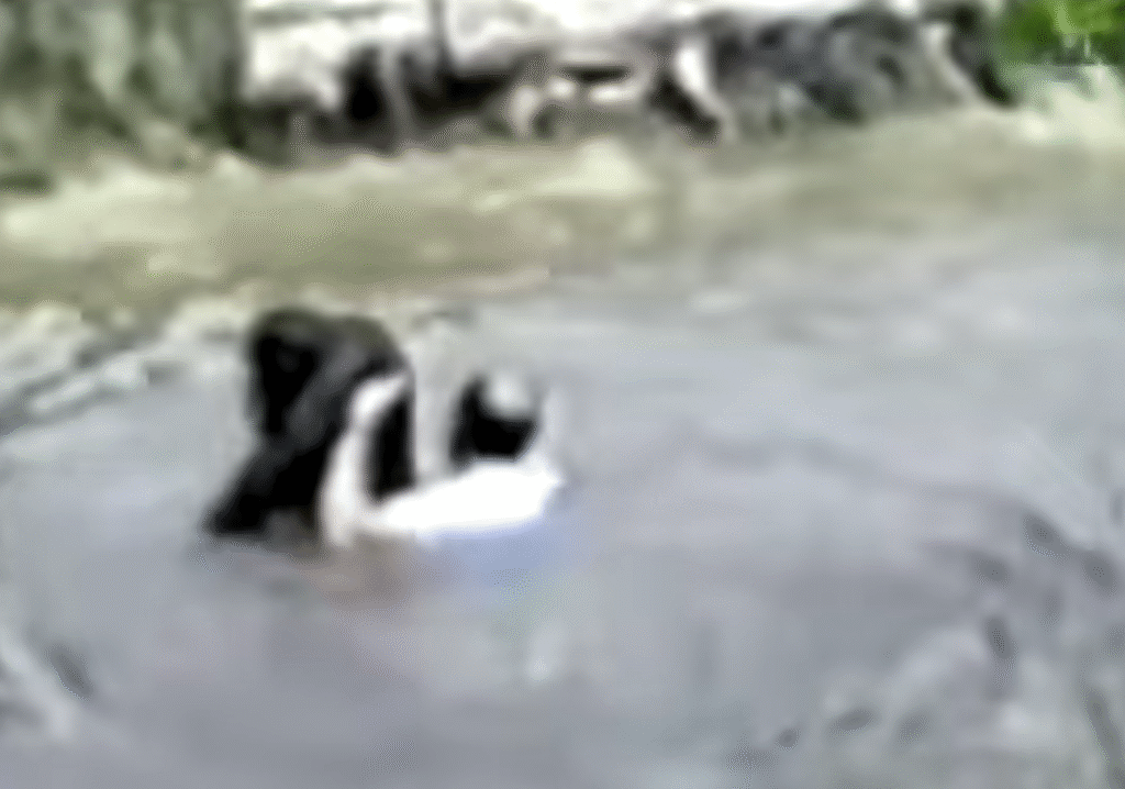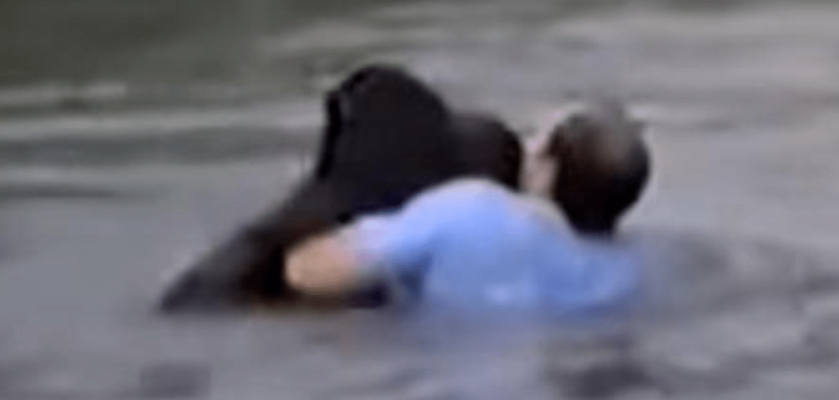 Soms willen ze simpelweg begrijpen wat er plaatsvindt. Rick wist Jo-Jo op tijd naar de rand te trekken en samen klommen ze uit het water.