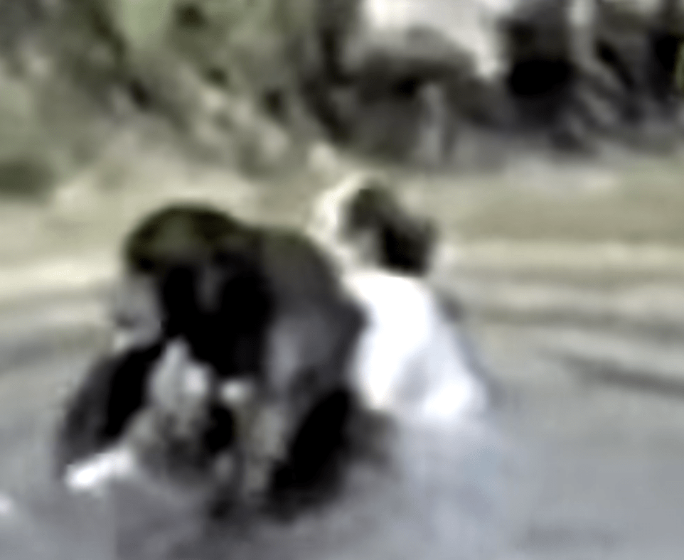 Eén van de dieren was Jo-Jo, die kleiner was dan de andere chimpansee. Het spel werd steeds actiever en vond plaats dicht bij het water.