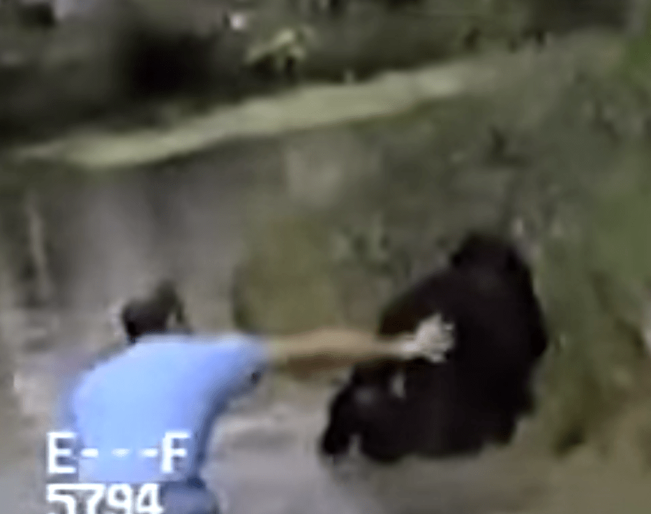 Jo-Jo probeerde weg te bewegen richting de bomen, want chimpansees voelen zich vaak het veiligst op hoogte. Maar tijdens een sprong ging het anders dan bedoeld.