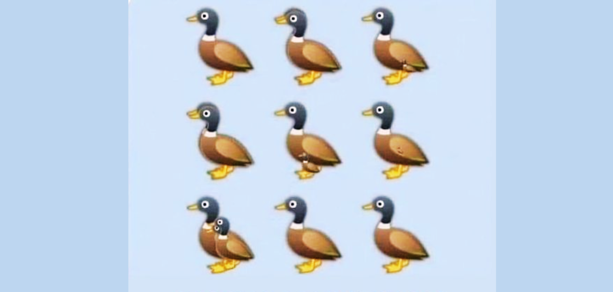 De afbeelding is ontworpen om het visuele waarnemingsvermogen te testen, met eenden die op slinkse wijze zijn gepositioneerd om ze moeilijk te tellen te maken.