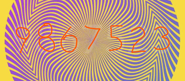 - In een levendige, kleurrijke spiraal was het getal 9867523 op ingenieuze wijze verstopt, zodat het niet direct zichtbaar was en pas met gerichte aandacht kon worden ontdekt.