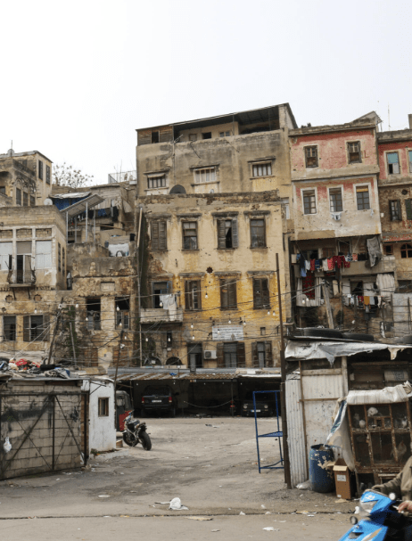 De wijk Bab Tabbaneh geldt als een economisch kwetsbare buurt. Veel gebouwen in dit deel van Tripoli zijn verouderd en hebben beperkt onderhoud gekregen.
