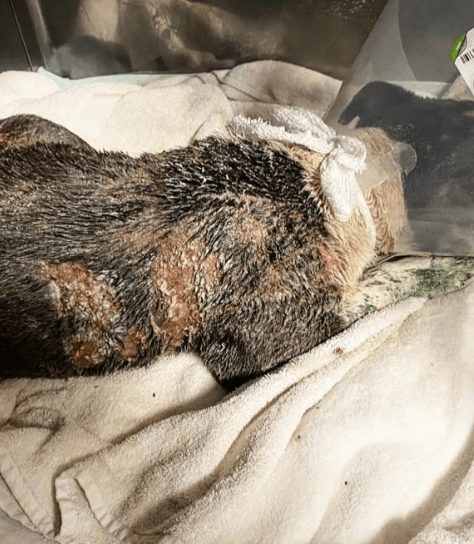 Clover werd overgebracht naar het North Valley Veterinary Center, waar dierenartsen haar meteen onderzochten. De verf bleek stoffen te bevatten die haar huid flink hadden geïrriteerd.