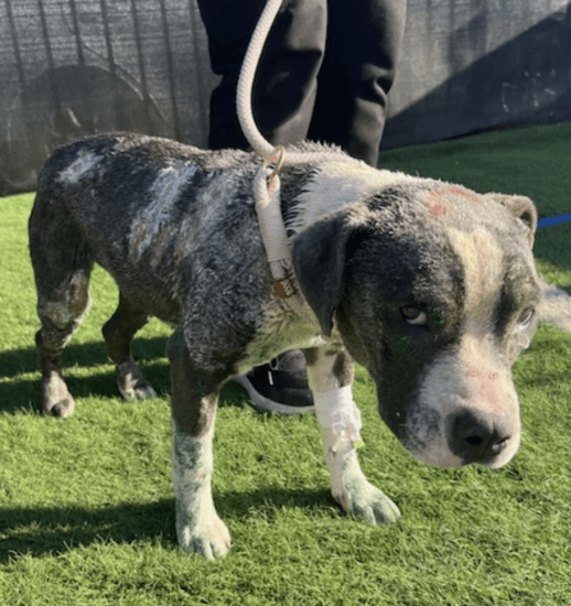 In een woestijnstad net buiten Los Angeles is een kleine pitbull genaamd Clover gered nadat zij volledig was ingesmeerd met groene verf. Het hondje zat alleen op straat, zichtbaar onzeker, totdat een voorbijganger haar opmerkte en direct hulp inschakelde.