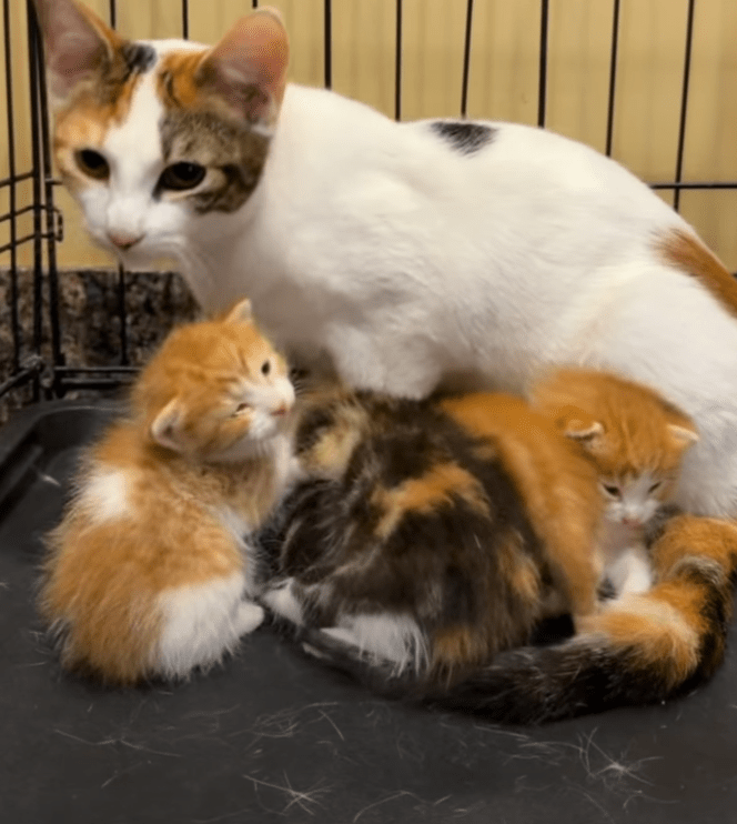 De driekleurige kat leek sterk op de vijf kleintjes. Het was daarom logisch dat iedereen dacht dat zij hun moeder was. Toch merkte de dierenarts tijdens de controle dat er iets niet klopte.