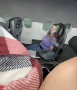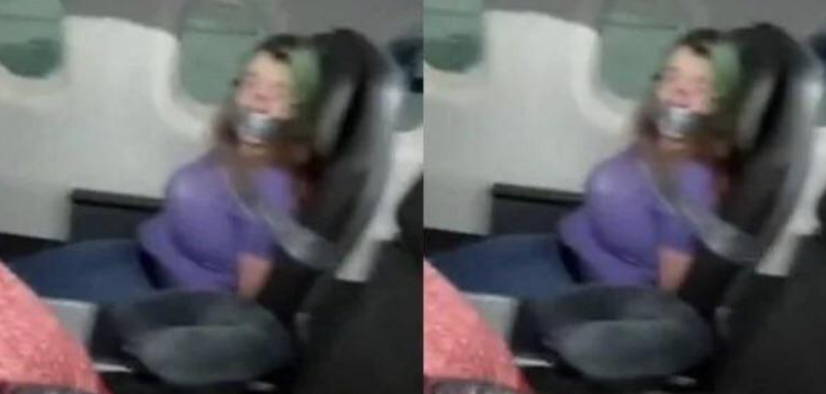 In een laatste poging om haar en andere passagiers veilig te houden, werd ze met ducttape vastgebonden aan haar stoel, een zeldzaam en extreem gebruik van fysieke beperking.
