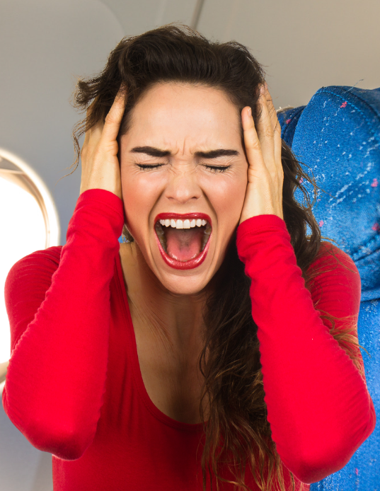 Terwijl het vliegtuig zich voorbereidde op de landing, werd het achtergrondgeluid overstemd door het geschreeuw van een vrouwelijke passagier.