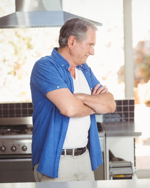 Met vastberadenheid in zijn ogen, loopt hij naar de keuken toe.