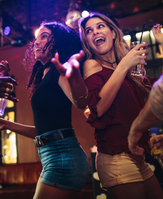 De vrouw en haar vriendinnen verloren zich volledig in het plezier, genietend van de muziek en de dans.