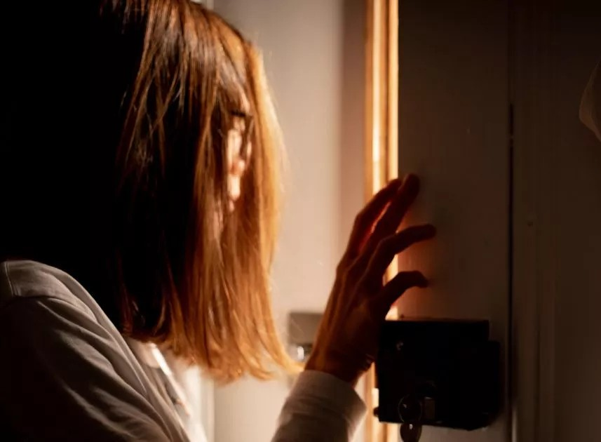 De vrouw, zich terdege bewust van haar late terugkeer, probeerde zo stil mogelijk de deur achter zich te sluiten.