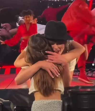 De emotionele uitwisseling werd vastgelegd en gedeeld door The Swift Society, een fanaccount op X (voorheen Twitter).