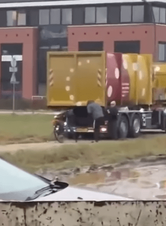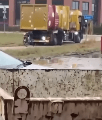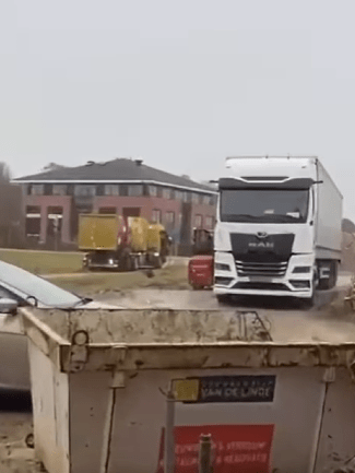 De video begint terwijl de vrachtwagenchauffeur al in de greppel naast de weg ligt. Hoe hij daar terechtkwam, is niet zichtbaar, waardoor het begin van het verhaal onduidelijk blijft.
