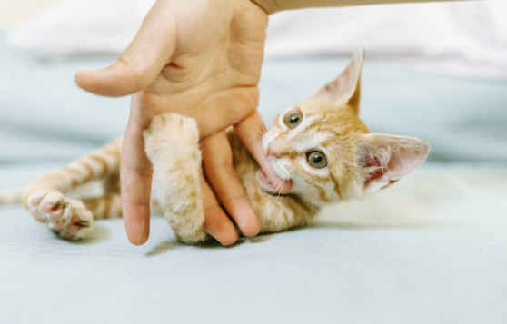 Soms gebeurt het dat een kat eerst tegen je aan wrijft en daarna een klein speels hapje geeft. Dat betekent meestal dat de kat even genoeg prikkels heeft gehad.