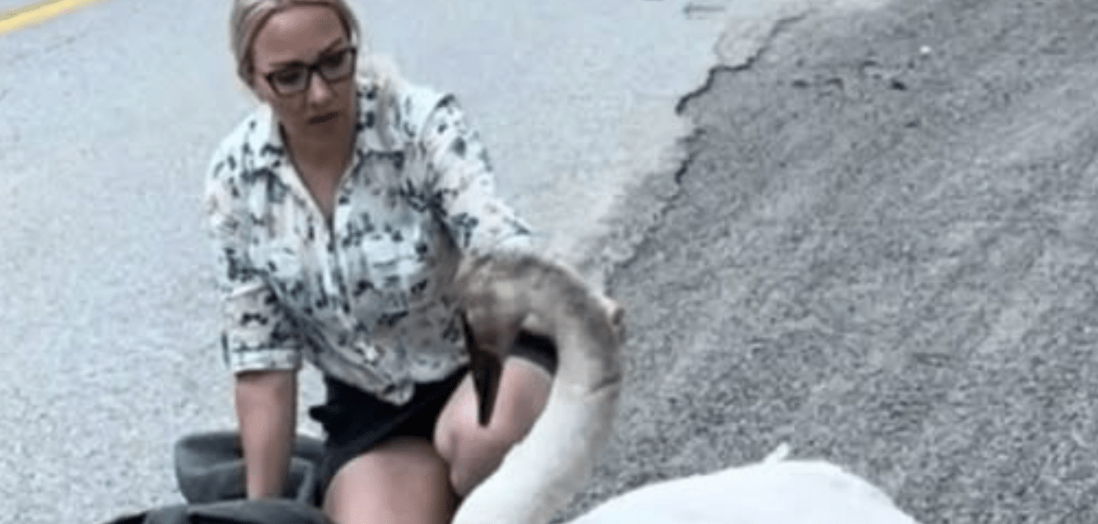 De zwaan leek niet in paniek, maar eerder moe van een lange tocht.