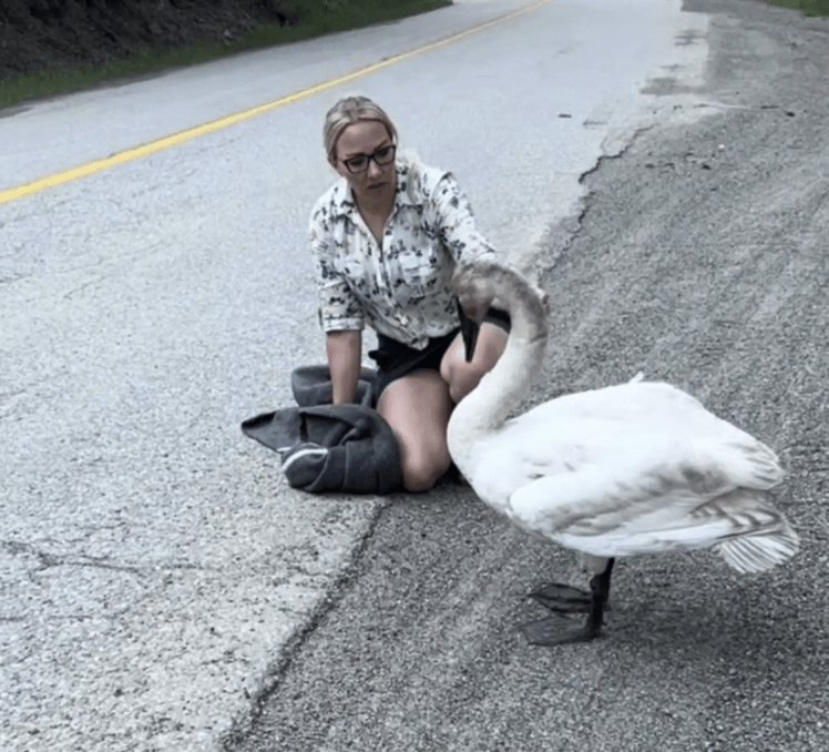 - Brandi Hansen vond een trompetzwaan op een bergweg bij Apex Mountain.