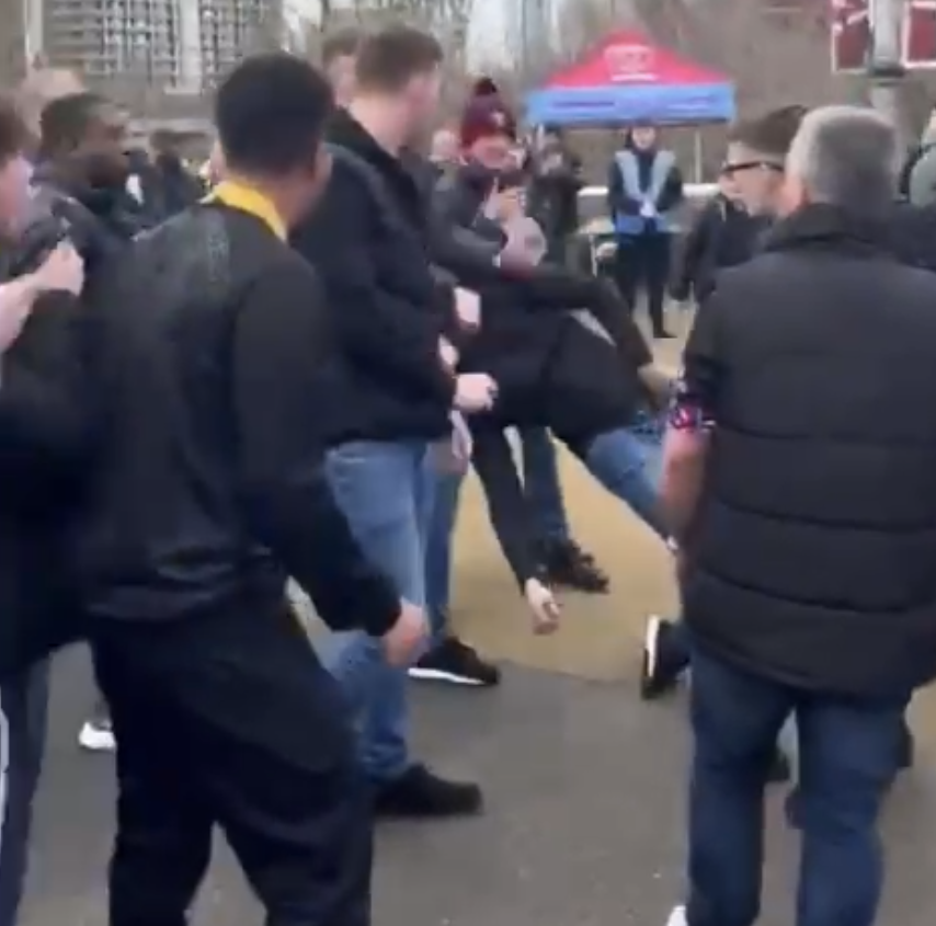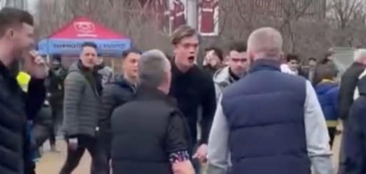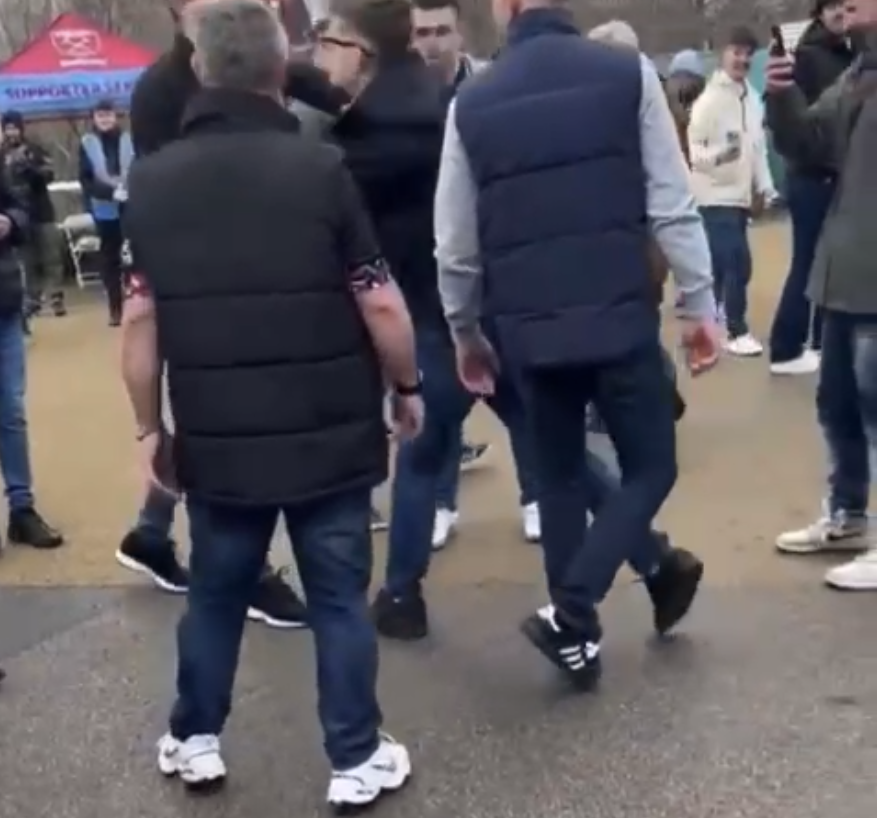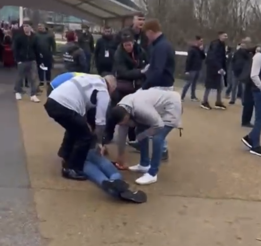 De spanning bleef voelbaar, en terwijl de rivaliteit tussen de clubs de emoties verder aanwakkerde, escaleerde het incident toen een jonge supporter zijn grenzen overschreed met scherpe opmerkingen richting een oudere man. Onmiddellijk haalden omstanders hun telefoons tevoorschijn om het alles vast te leggen.