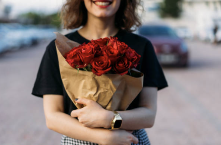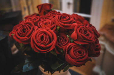 Op de balie, centraal geplaatst en met een indrukwekkende aanwezigheid, prijkte een weelderig boeket dat bestond uit dieprode rozen van onbeschrijfelijke schoonheid en intensiteit. De bloemen waren zo vers dat hun blaadjes bijna leken te glanzen en te ademen, als levende wezens die zich enkel in het zachte ochtendlicht dat door het raam naar binnen viel, onthulden. De hele balie werd verlicht door deze natuurlijke pracht, waardoor de ruimte een feestelijke en vreugdevolle sfeer uitstraalde, als een geheimzinnig festijn dat net begonnen was en een gevoel van opwinding en vreugde verspreidde onder iedereen die het geluk had om het te aanschouwen.