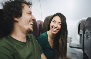Tot er een jong stel naar me toe liep, precies op het moment dat ik dacht dat dit eindelijk een kalme vlucht zou worden, voelde ik een golf van opluchting door me heen gaan. Echter, het contrast met mijn korte rustmoment voelde vervolgens pijnlijker en scherper dan ik had verwacht, waardoor de teleurstelling des te groter was.